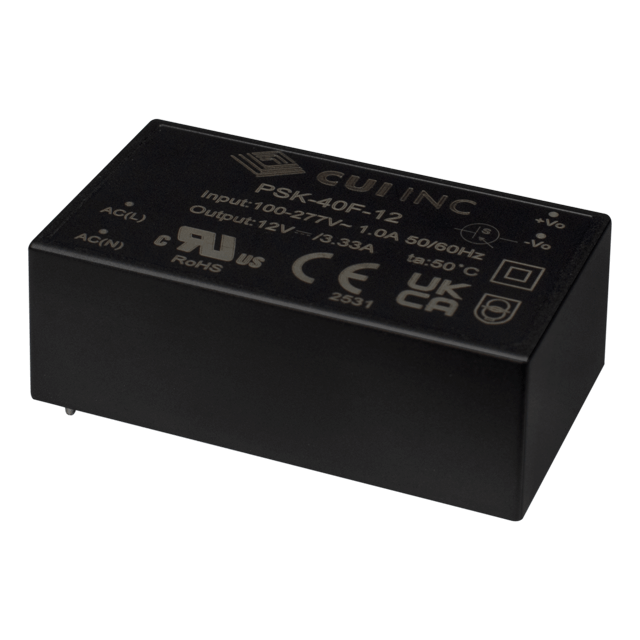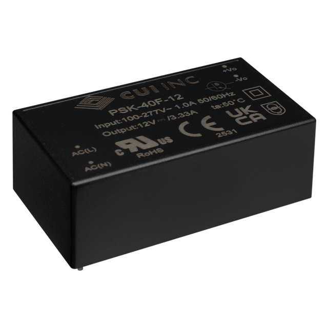 40W AC-DC Power Supply, 12VDC, 85-305VAC, 3.33A, 1 output, Encapsulated, Through Hole